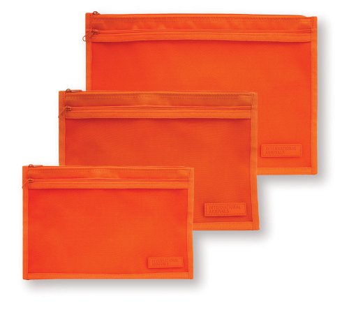 Versatile nylon pouch with front zippered mesh pocket, zippered interior pouch and velcro back pocket. Measures 10 x 6.5 Inches.